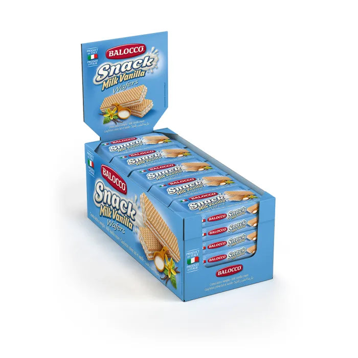 Crispy Wafers Filled With Milk Cream (78% Cream): Wheat Flour, Coconut Oil, Dehydrated Glucose Syrup, Whey (Milk) Powder, Sugar, Dried Skimmed Milk, 9.8% In The Cream Corresponding To 7.6% Of The Total Ingredients, Dextrose, Soya Flour, Emulsifier, Soya Lecithin, Raising Agents: Sodium Hydrogen, Carbonate, Disodium Diphosphate, Salt, Natural Flavouring, Vanilla Pods.