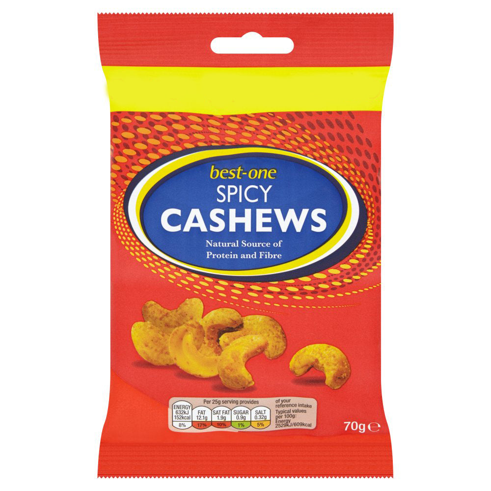 Cashew Nuts (98%), Spice Mix (Spices (Cayenne Pepper, Paprika, Birds Eye Chilli, Black Pepper), Salt, Acidity Regulator: Citric Acid; Colour: Paprika Extract), Rapeseed Oil.