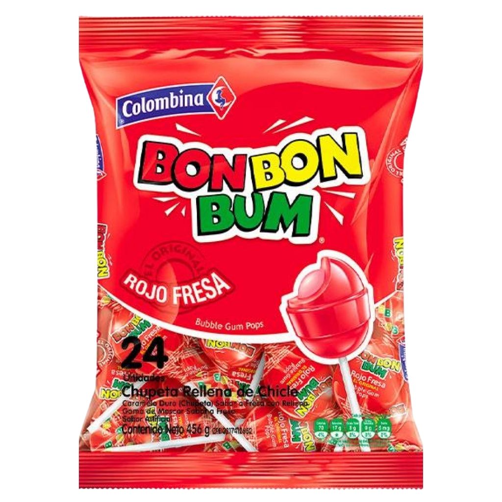 Bon Bon Bum is a lollipop with a bubblegum center. Due to its unique and traditionally Strawberry flavoring, the bonbon bum has been the most populator sweet for generations in Colombia.
