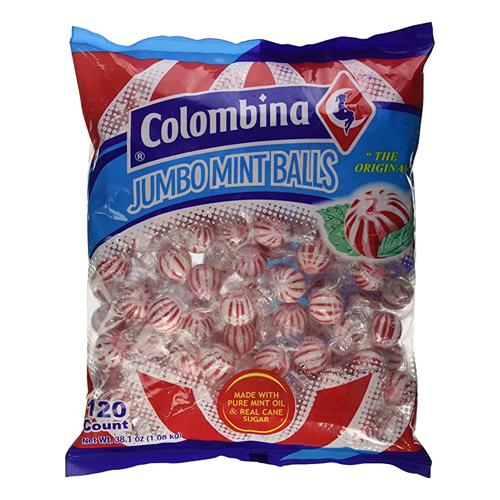 Individually wrapped jumbo mint hard candy balls. Made with pure mint oil and real cane sugar.