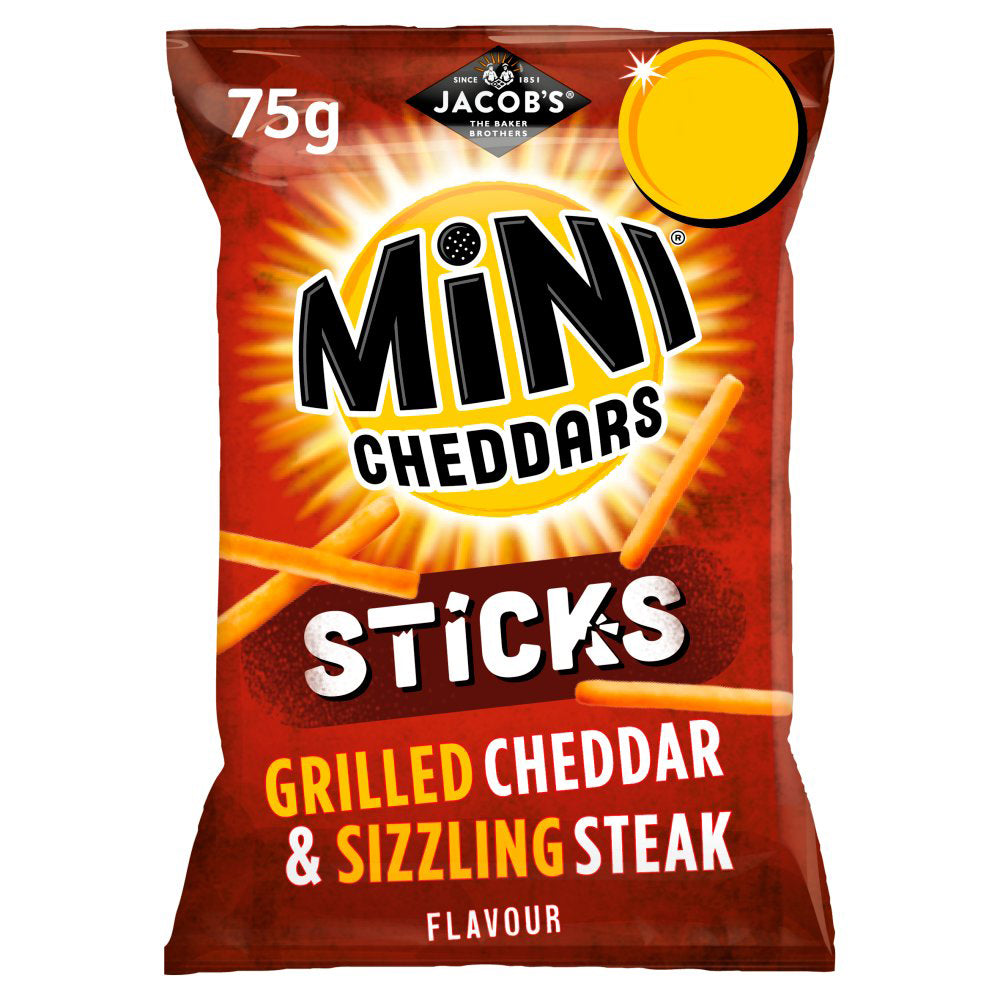 Jacob's Mini Cheddars Sticks Grilled Cheddar & Sizzling Steak Snacks 75g