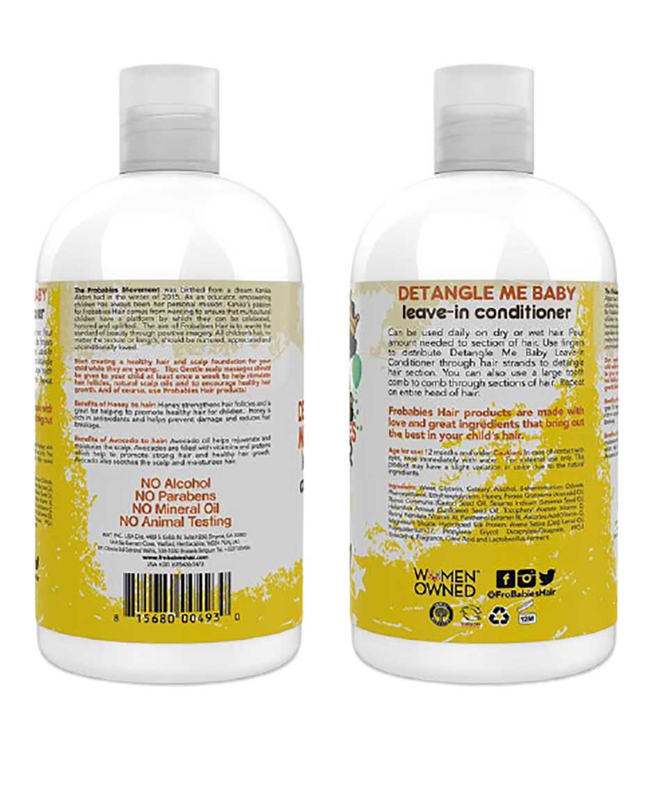 Can be used daily on dry or wet hair. Pour amount needed to section of hair. Use fingers to distribute Detangle Me Baby Leave-In Conditioner through hair strands to detangle hair section. You can also use a large tooth comb to comb through sections of hair. Repeat on entire head of hair.