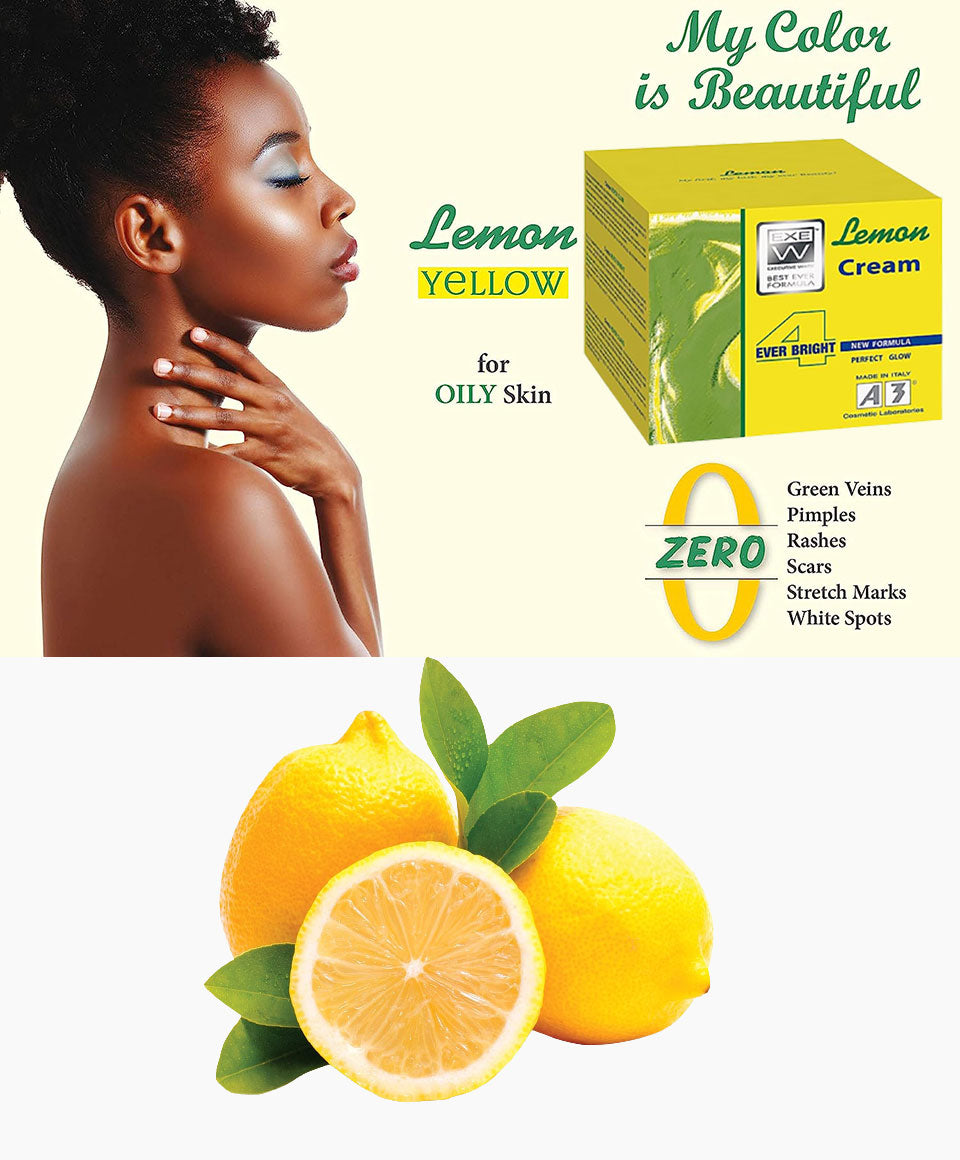 The A3 Lemon Face cream is a buttery consistence cream specially designed for dark skin to give a 4 Ever Bright Perfect Glow by contrasting the formation and or reappearance of skin blemishes (dark spots). This cream also provides deep moisture and smoothness without leaving oily layer on the skin so tonic and velvety, the skin will immediately appear more luminous and healthy.