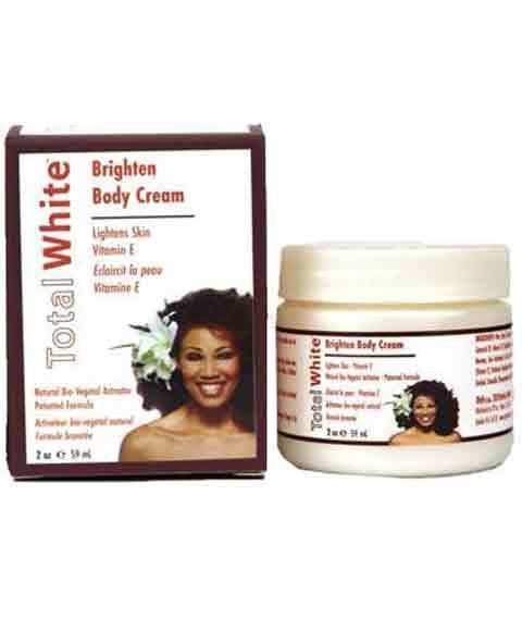 Total White Brighten Body Cream diminishes the appearance of dark spots and skin discolorations caused by acne, aging, sun damage, and pregnancy. This rich cream is formulated with Carrot Oil and Vitamins A, and E; it effectively moisturizes and nourishes your skin, while it protects against future damage. It safely brightens and evens dark spots for younger, healthier, more radiant looking skin.