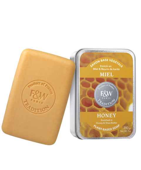 Keep your skin in check with softening F & W Honey Soap. It makes for a great complexion boost with exceptional moisturizing Shea Butter and soothing honey extract. Honey Soap is antibacterial and clarifying, it unclogs and opens up pores, making it ideal for acne prone skin. Healing anti-inflammatory benefits of Shea Butter protect and condition skin damage from the sun and wind as well as promote skin renewal, increases circulation and help soothe, balance and hydrate skin. Honey soaps intense moisturizing properties slows down skin aging and make for an excellent bathing soap to revitalizing dull, ashy skin. This rich natural soap leaves your skin feeling clean, hydrated and fresh.