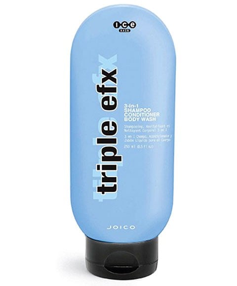 Triple Efx (3-In-1) is shampoo-conditioner-body wash all in one. In one step, this multi-tasking formula for stylish people on-the-go, gently cleanses, quenches and revives every inch-from head to toe. Cleanses and rejuvenates hair and body with chinese white tea, chamomile and ginseng.