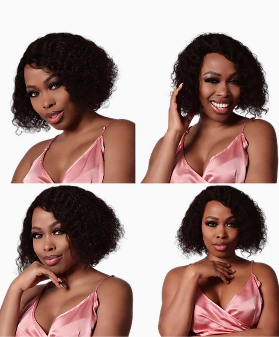 Virgin Gold Brazilian HH Lucy Wig made from 100% Virgin hair, Lucy has never been chemically treated so it has beautiful quality and is able to be it can be dyed, styled freely & washed. With a natural curl pattern this short bob wig also has a lace side parting.