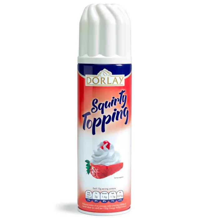 Skimmed MILK (57%), Vegetable Oil (15%) (Palm Kernel, Coconut, Palm, Rapeseed), Water, Sugar (8%), Fully Hidrogenated Palm Kernel Oil (5%), Propellent Gas (N2O), Emulsifiers (E471, E435), Stabiliser (E407), Natural Flavouring, Colouring (E160a).