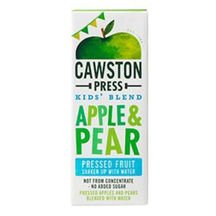 Cawston Press Kids Carton Apple & Pear 200ml. A classic orchard combination of pressed apples and pears, shaken-up with water for an evergreen blend.