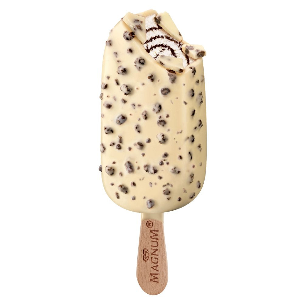 - Magnum White Chocolate & Cookies Ice Cream Sticks – experience the true pleasure of velvety smooth ice cream wrapped in a delicious combination of crunchy cookies and silky white chocolate
