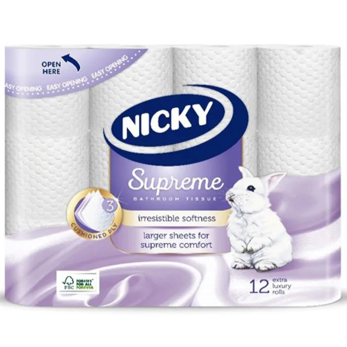 Nicky Supreme 3ply Toilet Tissue Rolls-12x5