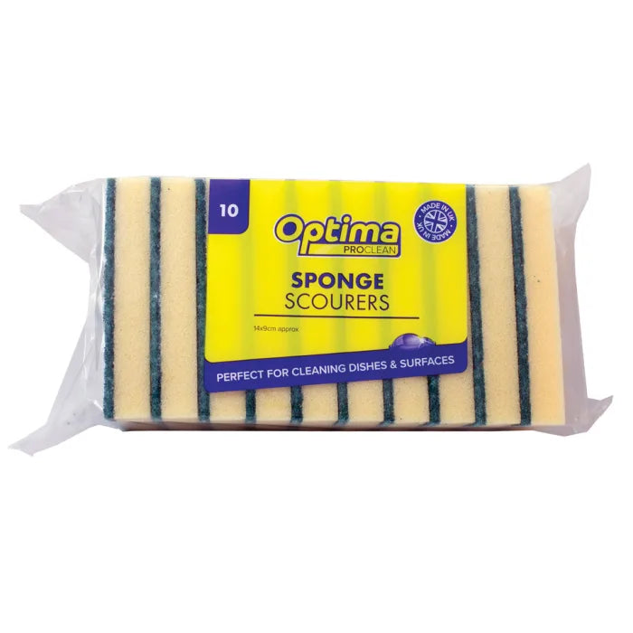 Large sponge scourers, ideal for removing tough stains, mopping up spills and cleaning surfaces.