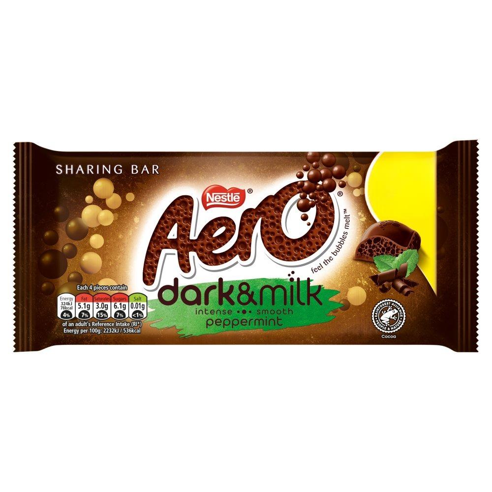 • High cocoa content dark chocolate that keeps milk attributes and is enhanced with Aero's famous peppermint