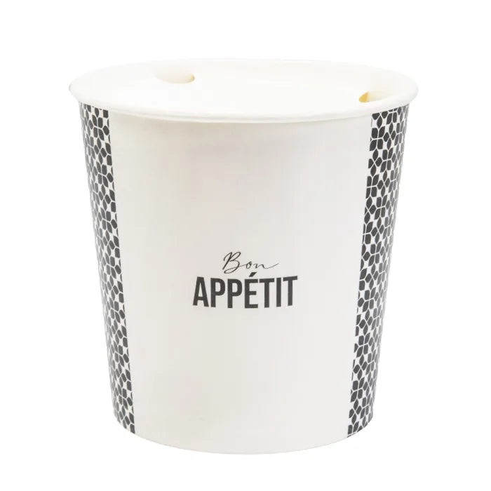 Sturdy, white food buckets, ideal for hot takeaway foods including chicken pieces, chips, doughnuts, popcorn and more. Holds up to 1000ml of foods - this size bucket is great for sharing. Resistant to grease and moisture, this sustainable packaging is fully recyclable. Buckets are sold with white cardboard lids, with cutouts at the side to ensure steam is released. 120 buckets and lids per box.