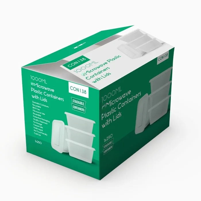 1000ml Microwave Plastic Containers with Lids Box of 250