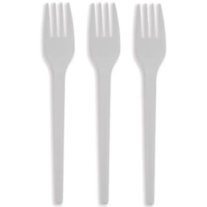 PPlastic, white, forks for catering and food use. Ideal for foodservice and large gatherings including BBQ's, parties, conferences and picnics. 10 packs of 100 forks.