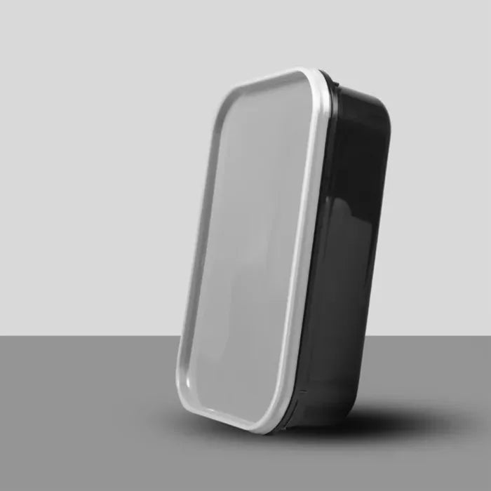 Black, rectangle plastic containers with frosted clear lids, made from premium quality plastic. Each container holds up to 675ml of both hot and cold foods and liquids. Safe for use in the microwave and freezer, and can be re-used and recycled.