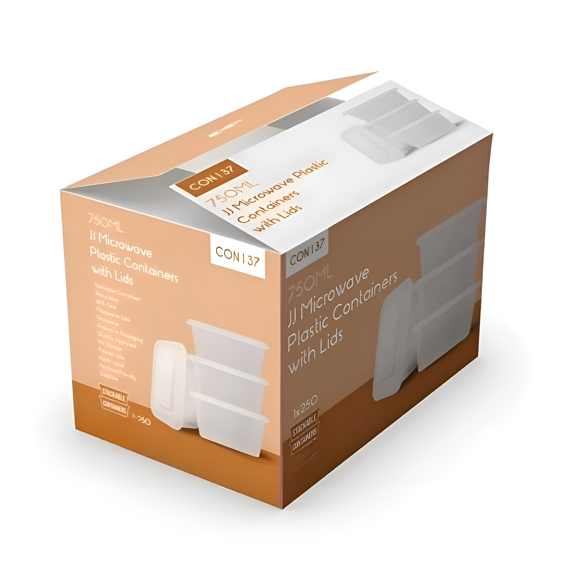 750ml Microwave Plastic Containers with Lids Box of 250