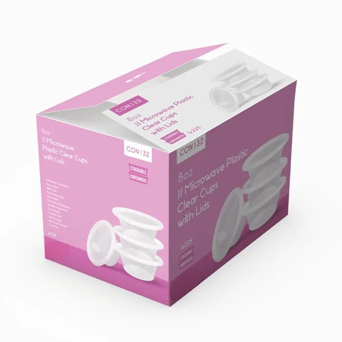 8oz Microwave Plastic Clear Cups with Lids Box of 225