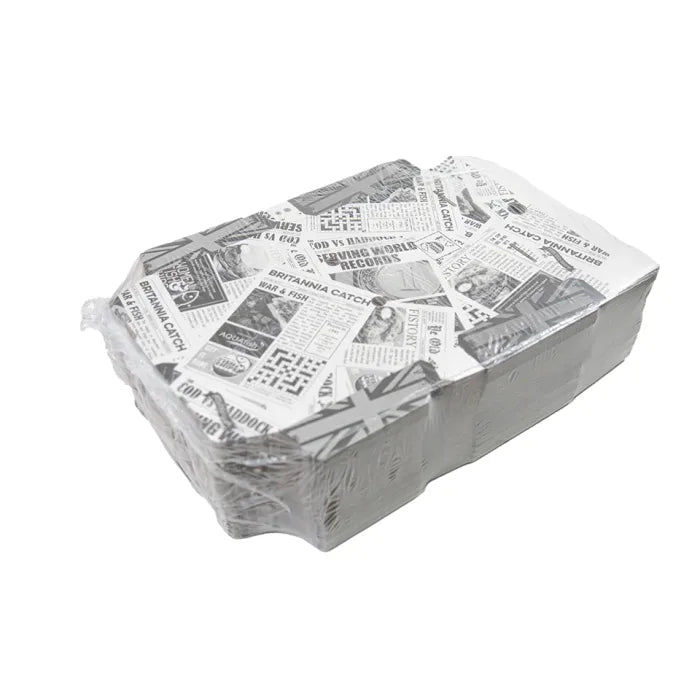 9" Newspaper Print Cardboard Fish & Chips Boxes (250x55x160mm) Case of 100