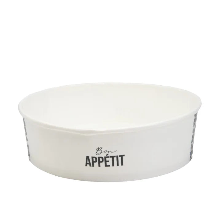 Sturdy round white bowls, ideal for holding up to 900ml of both hot and cold foods. A great sustainable serving option for salads, poke bowls, rice, noodles, pasta, fruit and much more. Oil and leak-proof. Tight-fitting lids sold separately (CON163). Stackable for easy storage. 100 bowls per box.