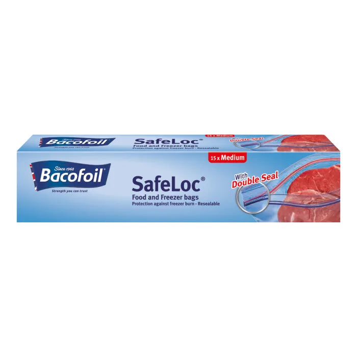 BacoFoil Medium SafeLoc Food and Freezer Bags Box of 15