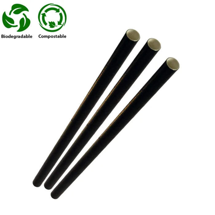 Black Compostable Paper Cocktail Sip Straws (120x5x6mm) Box of 250