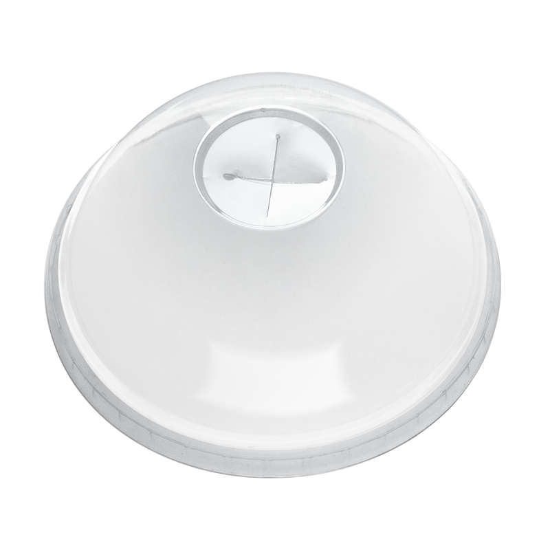 Clear domed lids with hole Lids fit Herald 12oz & 16oz clear plastic cups Smoothie / Slush lids