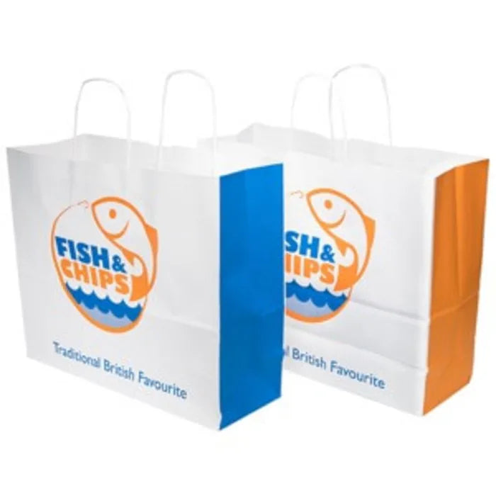 Fish & Chips Large Paper Carrier Bags (Twisted Handle) (360x310x155mm) Case of 125