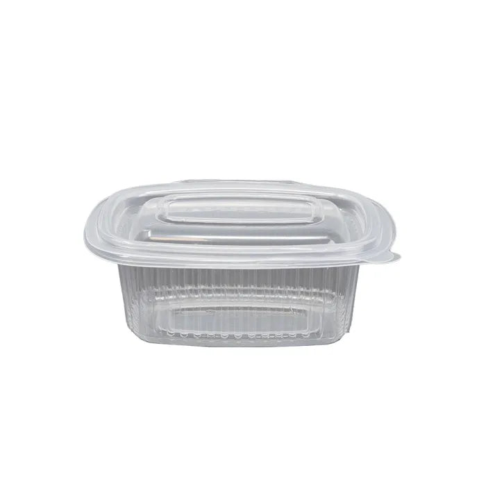 Durable, hinged plastic food container, with self-sealing lids. Ensuring safe transportation and storage of solid and liquid foods, ideal for salads, pasta, fruit and cake slices. Holds up to 250ml of hot and cold foods. 495 containers per box.