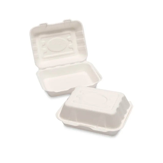 Natural Leaf 6" White Bagasse Burger Box (152x152x78mm/HP6) Case of 500