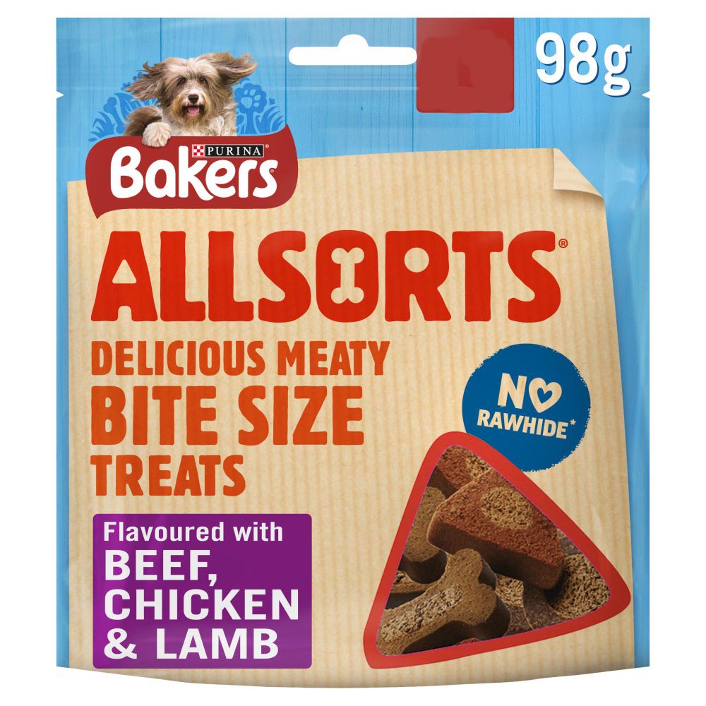 Bakers Allsorts Delicious Bite Size Treats Flavoured with Chicken, Beef & Lamb 98g