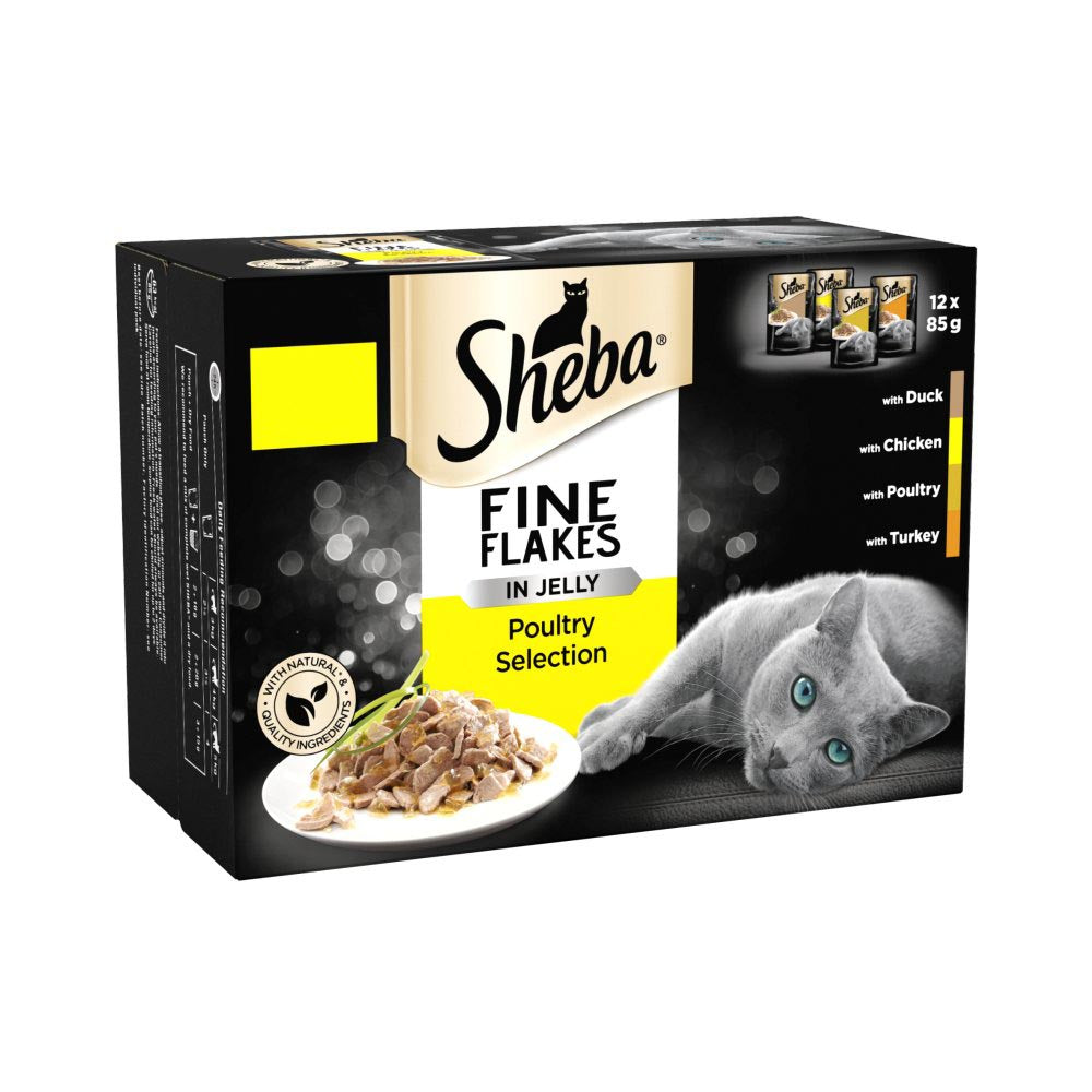 Sheba Fine Flakes Cat Food Pouches Poultry in Jelly 12 x 85g
