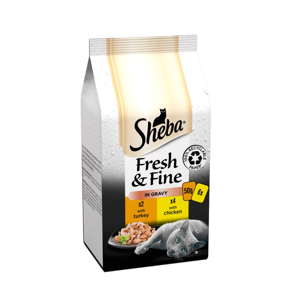 Sheba Fresh & Fine Wet Cat Food Pouches Chicken & Turkey in Gravy 6 x 50g
