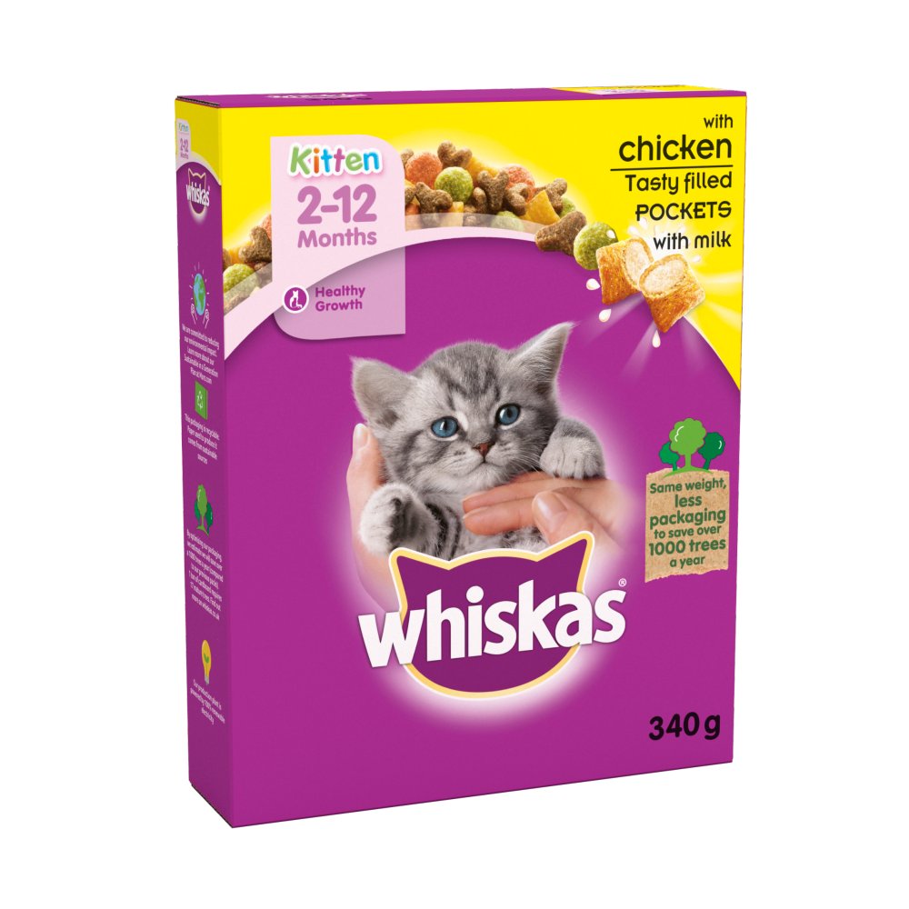 - Whiskas 2-12 months dry kitten food provides complete nutrition for the balanced diet your kitten needs to grow up into a healthy cat