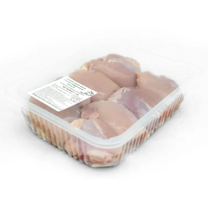 Satisfy your taste buds with the succulent and flavorful taste of our Fresh Halal Skinless Boneless Chicken Thigh Meat! Our chicken is carefully selected and delivered straight to your door, ensuring maximum freshness and quality. With 4x1kg packs of boneless thigh meat without skin, you'll have enough to prepare your favorite dishes for your family or friends. Our halal-certified chicken is of the highest standard, ensuring that you're getting only the best quality. This thigh meat is perfect for grilling, frying or baking, and makes for a delicious and satisfying meal. So whether you're making a quick stir-fry or a hearty curry, our Fresh Halal Skinless Boneless Chicken Thigh Meat is the perfect choice. Order now and taste the difference of premium halal chicken!
