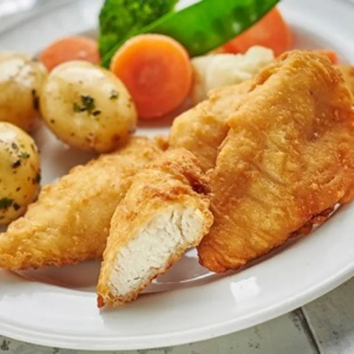 Chicken Breast (57%), Wheat Flour, Water, Palm Oil, Modified Tapioca Starch, Salt, Wheat Starch, Wheat Gluten, Paprika Extract, Raising Agents (Disodium Diphosphate, Sodium Bicarbonate), Stabiliser (Pentasodium Triphosphate), Rice Flour, Dextrose, Yeast, Sunflower Oil, Onion Powder, Garlic Powder, Black Pepper, Celery.