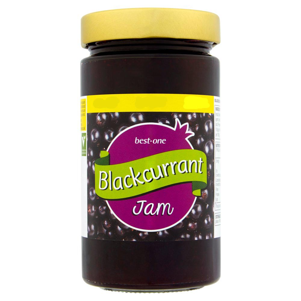 Glucose-Fructose Syrup, Blackcurrants, Sugar, Gelling Agent: Pectin, Acidity Regulator: Citric Acid, Prepared with 35g of Fruit per 100g Jam: Total Sugar content 63g per 100g.