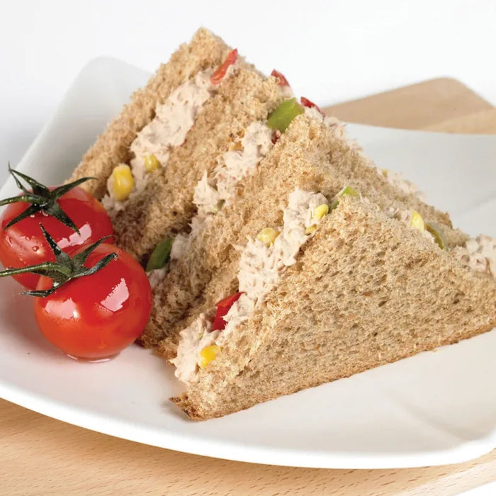 Flakes of tuna mixed with thick, creamy mayonnaise. Ready to eat, pair with your choice of bread, dollop on jacket potatoes, or serve with salad for a quick, tasty lunch option.