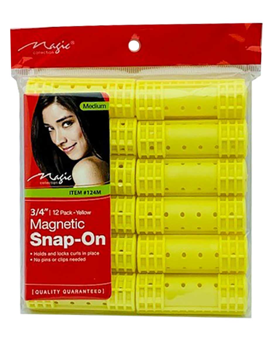 Magnetic Snap On Rollers 124M Yellow. Rollers hold securely. Easy to use and wash. For all types of hair.
