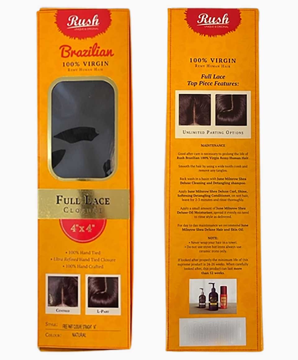 Rush Brazilian 100% virgin remy human hair .Full Lace Closure Top piece features with unlimited parting options.