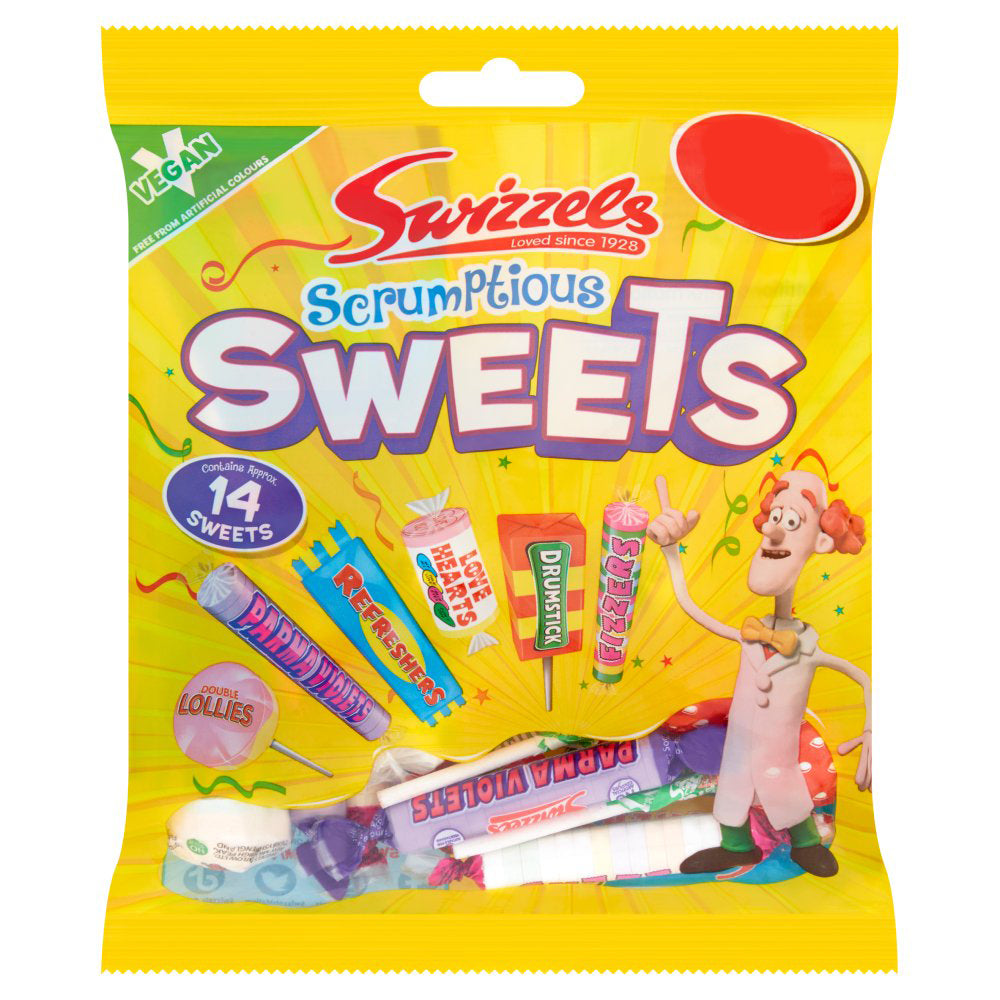 Sugar, Glucose Syrup, Acidity Regulators: Malic Acid, Citric Acid, Anti-Caking Agents: Stearic Acid, Magnesium Stearate, Magnesium Carbonate, Vegetable Oils (Palm, Palm Kernel), Dextrose, Modified Starch, Sodium Bicarbonate, Flavourings, Cornflour, Lysed Soya Protein, Emulsifier: Glycerol Mono Stearate, Colours: Anthocyanin, Beetroot Red, Copper Chlorophyllin, Curcumin, Lutein, Paprika Extract.
