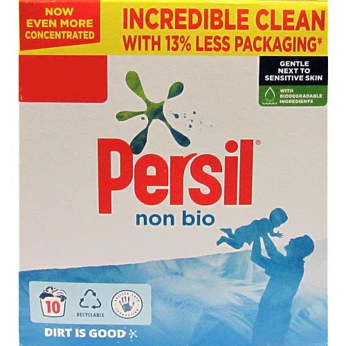 • Persil Non Bio Washing Powder, with its now even more concentrated formula, gives great cleaning results on every wash, including quicker and cooler programmes
