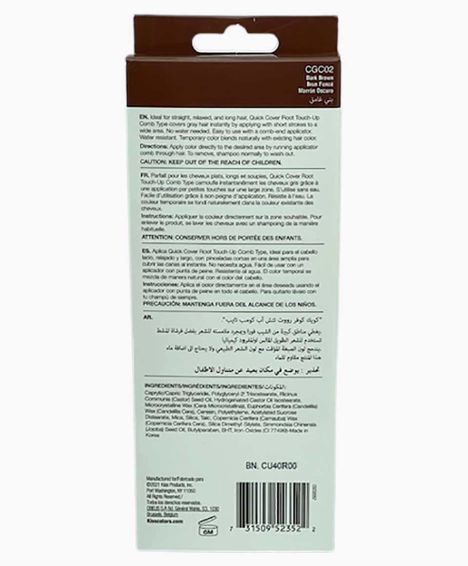 Kiss Colors Quick Cover Gray Hair Touch Up Comb CGC02 is suitable for straight, relaxed and long hair. Comb-on application is the most simple way to cover roots and loose grays between hair colorings .